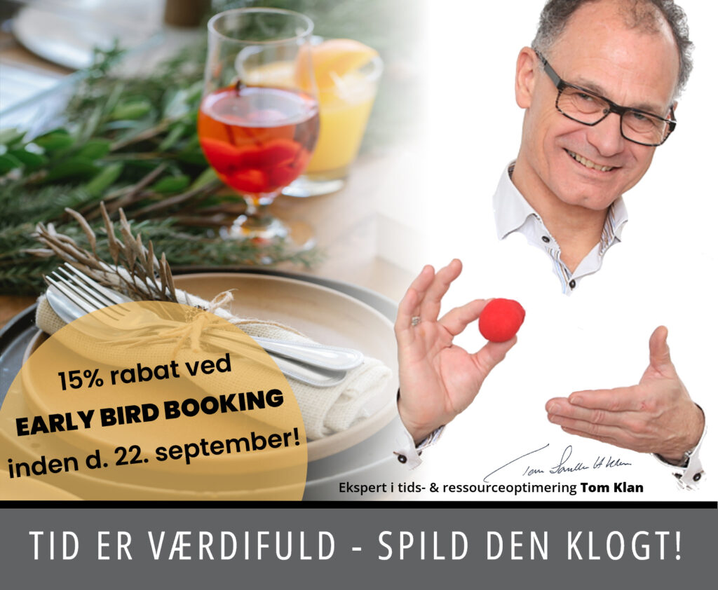 Mit navn er Tom Klan. Jeg rådgiver og hjælper private og offentlige virksomheder med at optimere deres tids – og ressourcestyring.